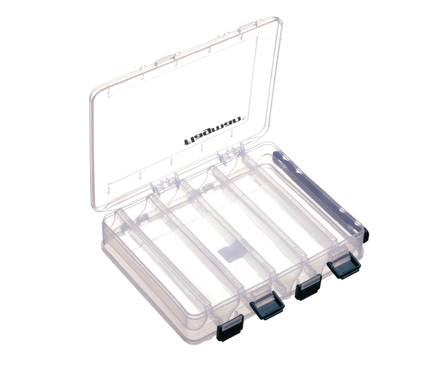 Двухсторонние компактные коробки, в которых перегородки расположены зигзагообразно, каждая имеет S-образный изгиб, что позволяет оптимально использовать внутреннее пространство. Крышка и длинная защелка закреплены шарнирно, что увеличивает их ресурс.