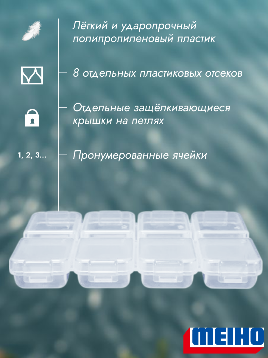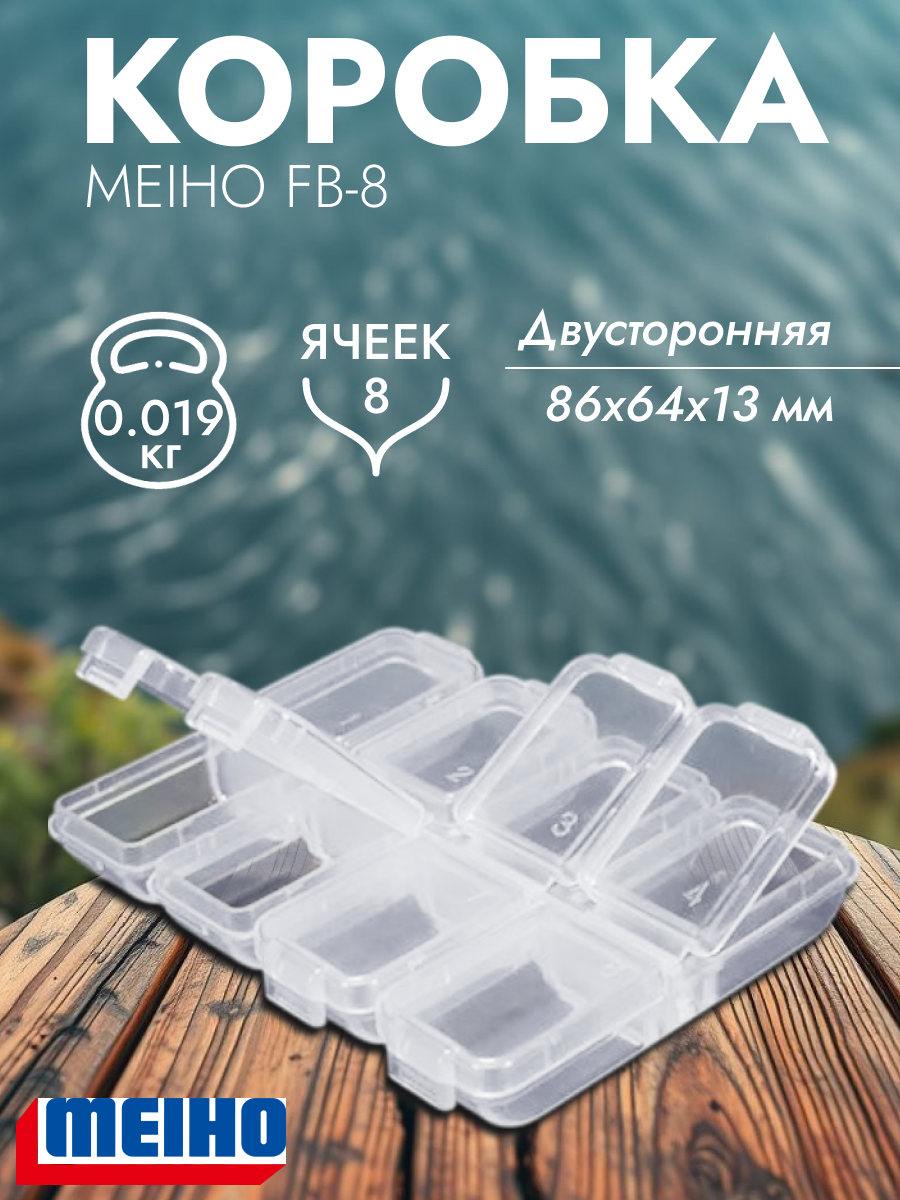 Коробка Meiho FB-8 - японское инженерное решение для тех, кто ценит компактность и порядок в рыболовных аксессуарах.