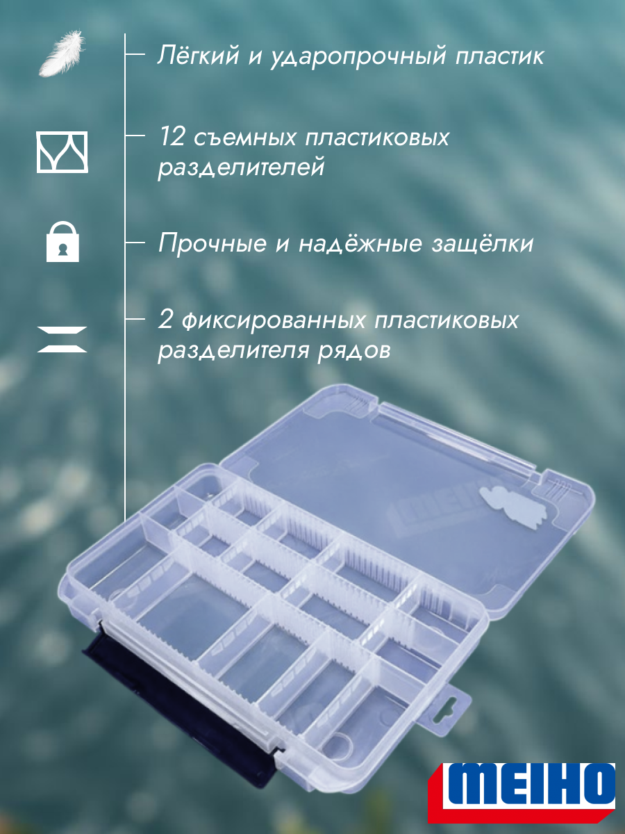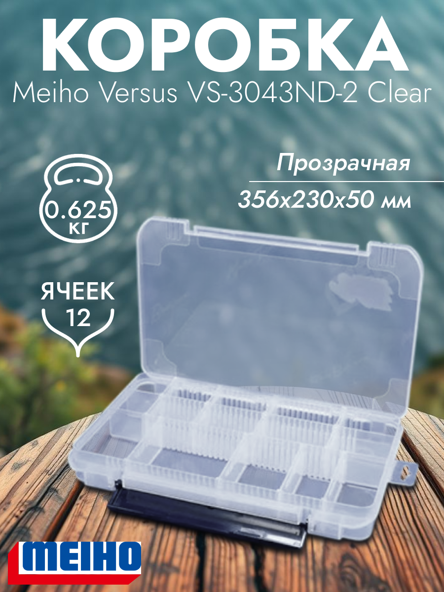 Прозрачная коробка серии VERSUS от MEIHO представляет собой топовое решение для организации рыболовного арсенала. Модель VS-3043ND-2 Clear с габаритами 356×230×50 мм сочетает японское качество изготовления с инновационными инженерными решениями.