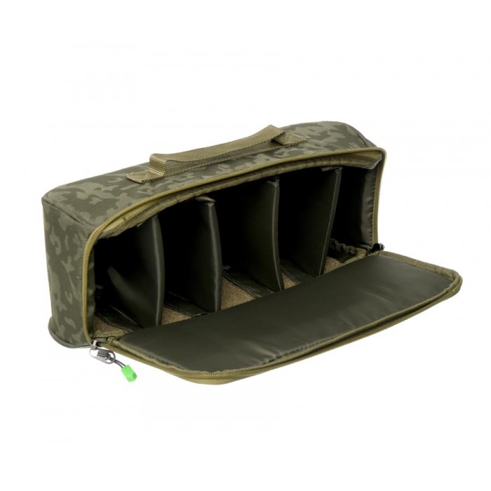 Carp Pro Diamond Accessory Bag Multi – функциональная сумка в полужестком исполнении для рыболовных инструментов и аксессуаров. Изготовлена из фирменного влагостойкого камуфлированного материала Oxford 650D. Ее внутреннее пространство разделено съемными перегородками на пять отделений. Мягкие перегородки с креплениями на липучках надежно защищают содержимое, при этом позволяя с легкостью трансформировать размеры отделений Diamond Accessory Bag Multi под ваши нужды. Запасные шпули к катушкам, грузила, кормушки, бобины с леской и поводковыми материалами – все можно быстро и удобно расположить в этой сумке. Для удобства транспортировки предусмотрена ручка.