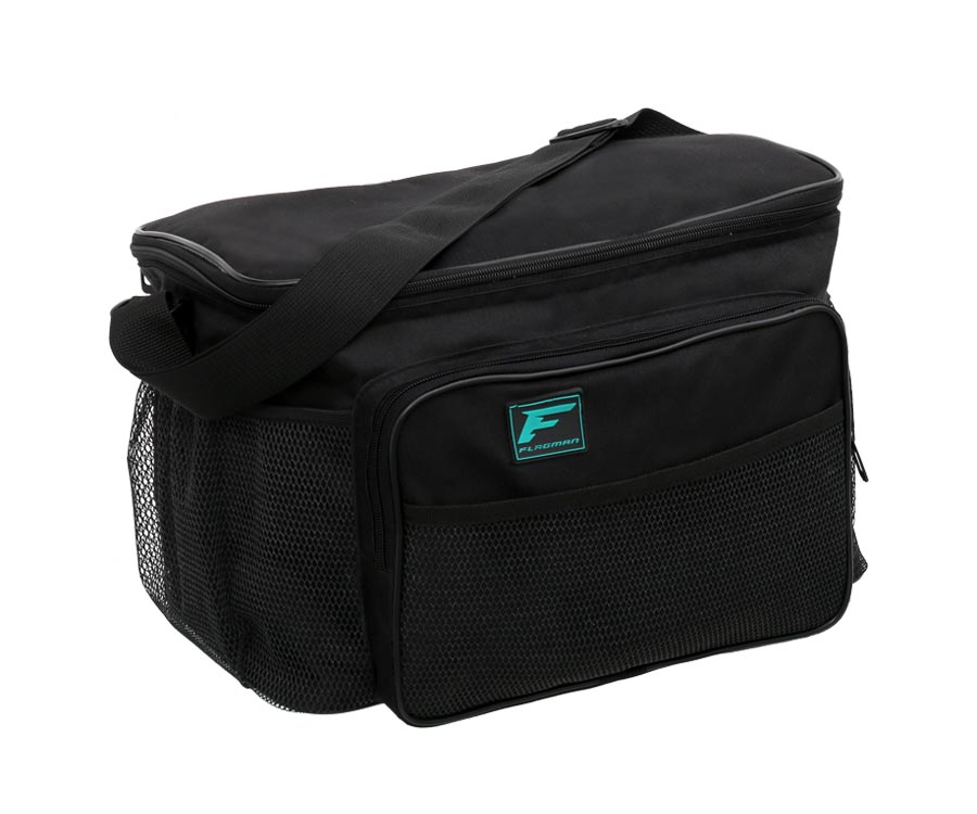 Очень легкая и удобная сумка Flagman для спиннингистов. Обладая прямоугольной формой, позволяет компактно разместить от 4 до 6 пластиковых коробок с приманками. Сумка пошита из прочной, синтетической ткани, имеет один карман на молнии снаружи и один — внутри. В эти карманы можно поместить различную рыболовную фурнитуру, например, блесна, воблеры, крючки и т.д. По бокам сумки имеются сетчатые карманы. Регулируемый по длине плечевой ремень предполагает, что такая сумка будет постоянно находиться на берегу, в точке лова. При необходимости смены места, сумку можно набросить на плечо, освободив руки. Объем сумки — 19 л.