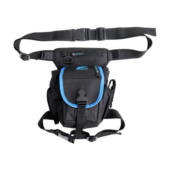 Универсальная, разгрузочная сумка для рыболовных аксессуаров. Имеет два крепления — на поясе и на бедре — и не вызывает дискомфорта на рыбалке. Выполнена из прочного синтетического материала. Для надежной фиксации используется регулируемый нейлоновый ремень и защелки типа Fastex. Основной и верхний отсеки закрываются на молнию. Боковые карманы небольшого размера застегиваются на «липучки» и предназначены, например, для инструмента нож, экстрактор или различной «мелочевки».