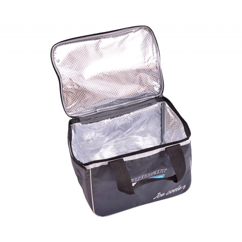 Термосумка выполнена из абсолютно непромокаемой ткани с ПВХ-покрытием, закрывается на молнию. Стенки имеют вставки из мягкого пористого материала, а внутренняя поверхность отделана отражающим материалам. Благодаря этому сумка отличается великолепными термоизоляционными свойствами. Предназначена для транспортировки и хранения во время рыбалки скоропортящихся приманок и прикормок, может использоваться для продуктов питания. Для поддержания в сумке низкой температуры есть смысл приобрести хладагент.