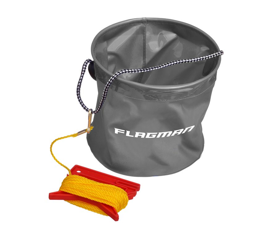 Ведро для воды Flagman 22х19,5 cм – небольшое мягкое 6-литровое ведро из материала EVA, которое используется для зачерпывания воды из водоема (чтобы увлажнять прикормку или мыть руки). Комплектуется длинной веревкой (7 м) и мотовилом для обеспечения возможности зачерпнуть воду с высокого берега, вымостки или дамбы.