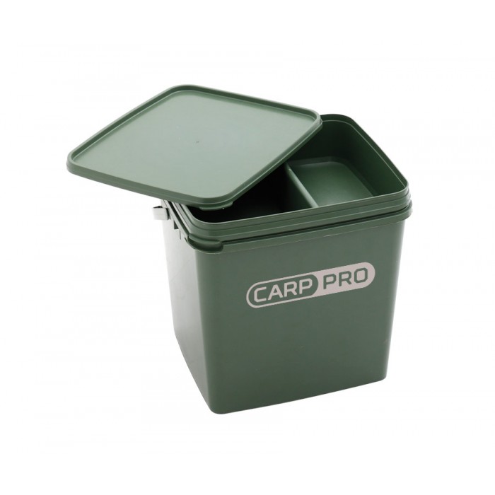 Ведро, предназначенное для хранения прикормки, прежде всего, во время прикармливания сподом. Между ведром и крышкой расположен дополнительный двухсекционный лоток, который плотно закрывает ведро и может выполнять функции крышки. Лоток можно не устанавливать – крышка все равно плотно закрывает ведро. Ведро с установленным лотком удобно использовать для прикармливания «коброй» (в лотке располагаются бойлы), а также в качестве небольшого предметного столика. Верх: 23х26х26 см;Дно: 24х20,5 см; Бокс: 26х23х6,5 см, Комплектация: с крышкой