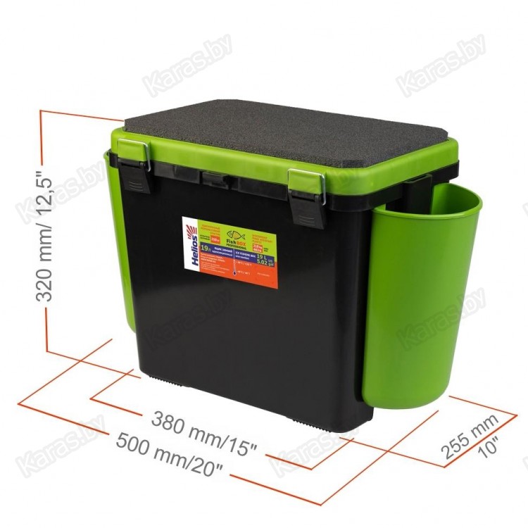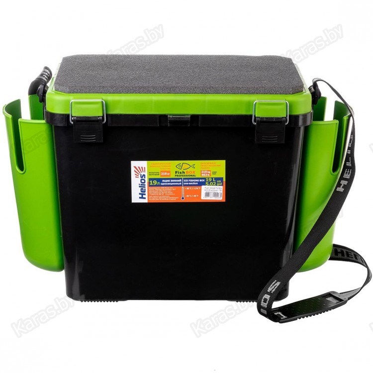 Ящик рыболовный зимний Helios 19 л с карманами односекционный (салатовый)
