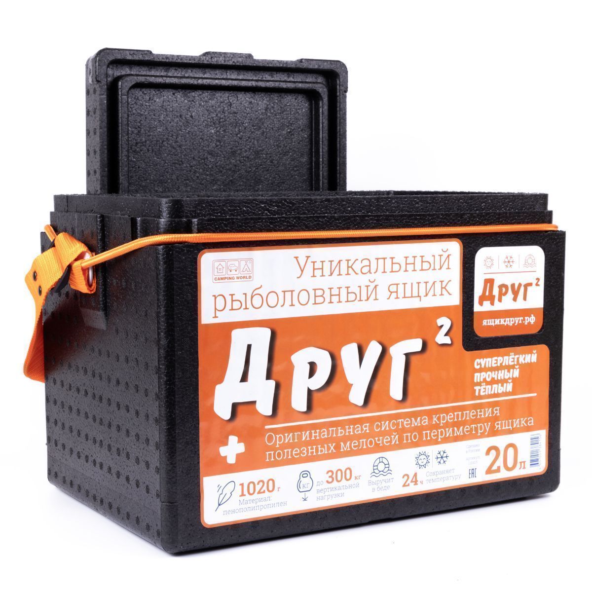 Ящик «Друг-2+» идеально подходит для транспортировки и хранения рыболовных снастей, а также продуктов питания. Его конструкция позволяет использовать его как стул или стол. Более того, он способен удержать на плаву человека в зимней одежде, что делает его незаменимым в экстремальных ситуациях.