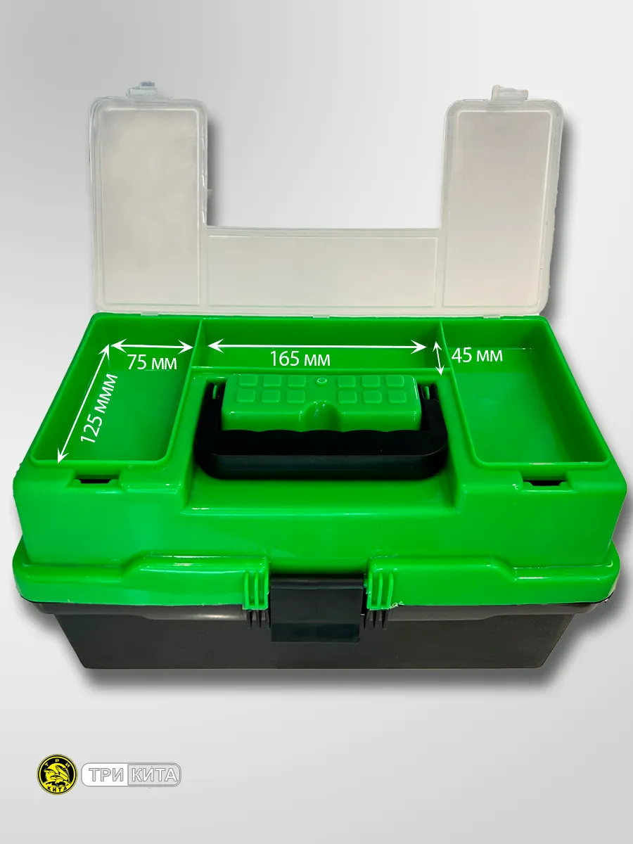 Ящик открывается благодаря ступенчатой раздвижной системе, его крышка служит опорой. В крышку встроены три отдела для мелких рыболовных принадлежностей, которые расположены под прозрачной, плотно защелкивающейся крышкой, что позволяет не открывая короб, быстро оценить содержимое этих отделов и выбрать нужную мелочевку. Органайзер содержит 2 лотка и основное глубокое отделение, закрываются плотно, изолированы друг от друга, что полностью исключает возможность перемешивания и спутывания приманок, воблеры, блесна, средние рыбацкие снасти. В нижний сектор можно сложить необходимые инструменты, эхолот, фонарик, катушку с леской и другую комплектацию для личных нужд. Подойдет дома, в быту, в гараж для мелочей, которые требуют сортировки и хранения. Отличный подарок для папы, мужа рыбака, охотника, автослесаря.