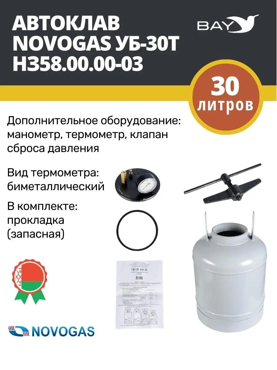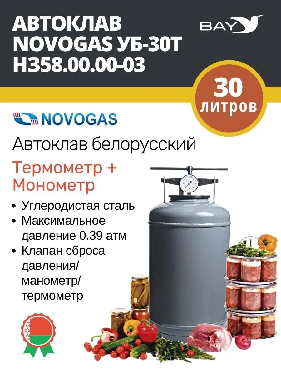 | Модель | Автоклав Novogas УБ-30Т НЗ58.00.00-03 (30 л) |