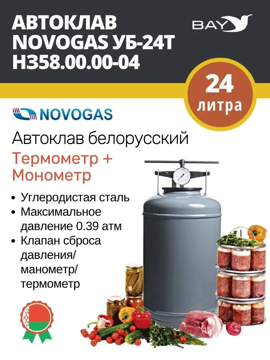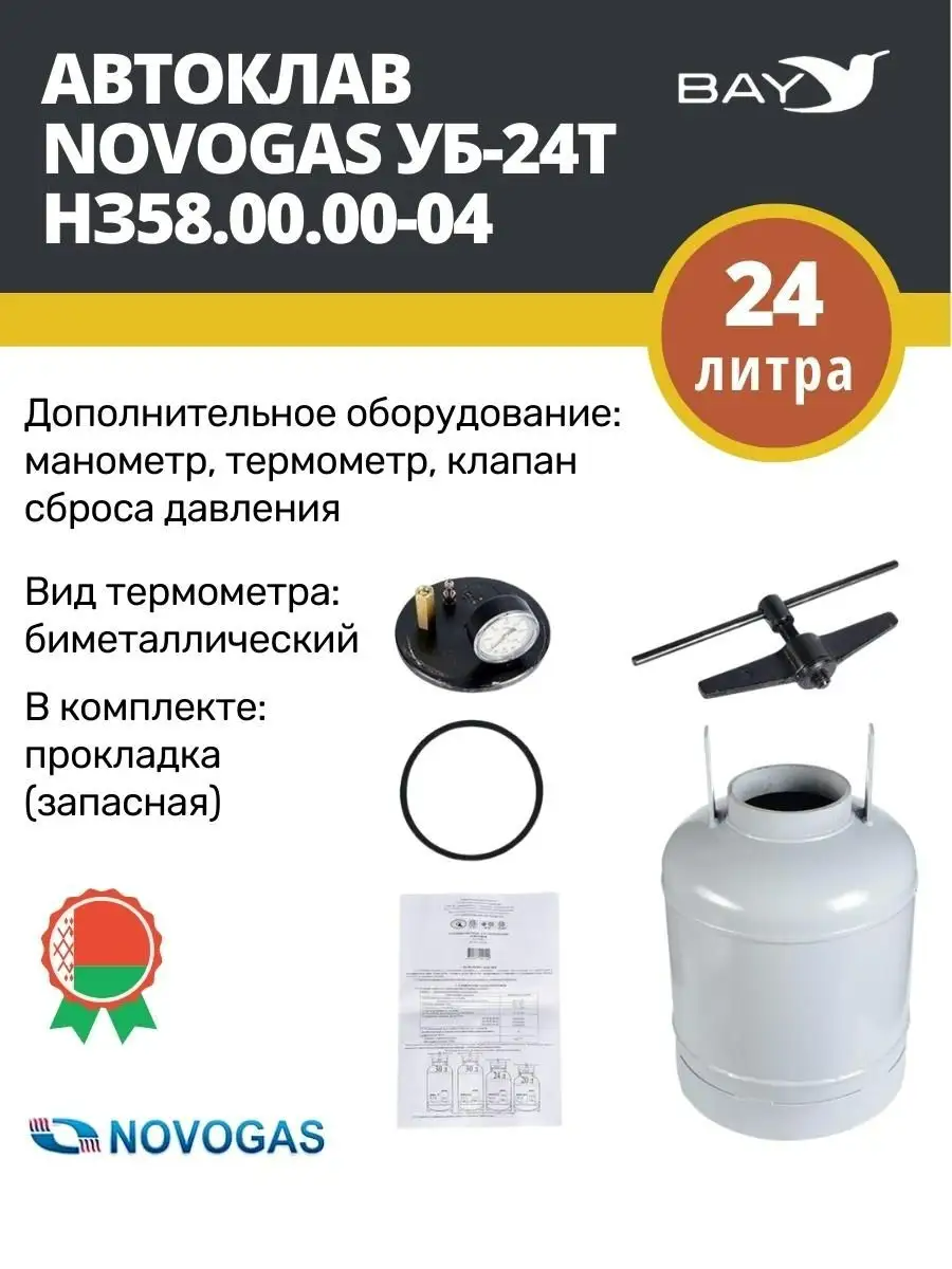 | Модель | Автоклав Novogas УБ-24Т НЗ58.00.00-04 (24 л) |