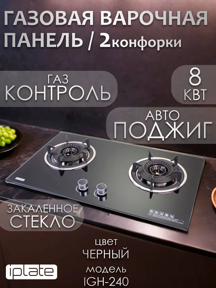 Газовая варочная панель IPlate IGH-240 – это оптимальное сочетание современных технологий, надежности и эргономики, созданное для требовательных пользователей, ценящих качество и безопасность на кухне.