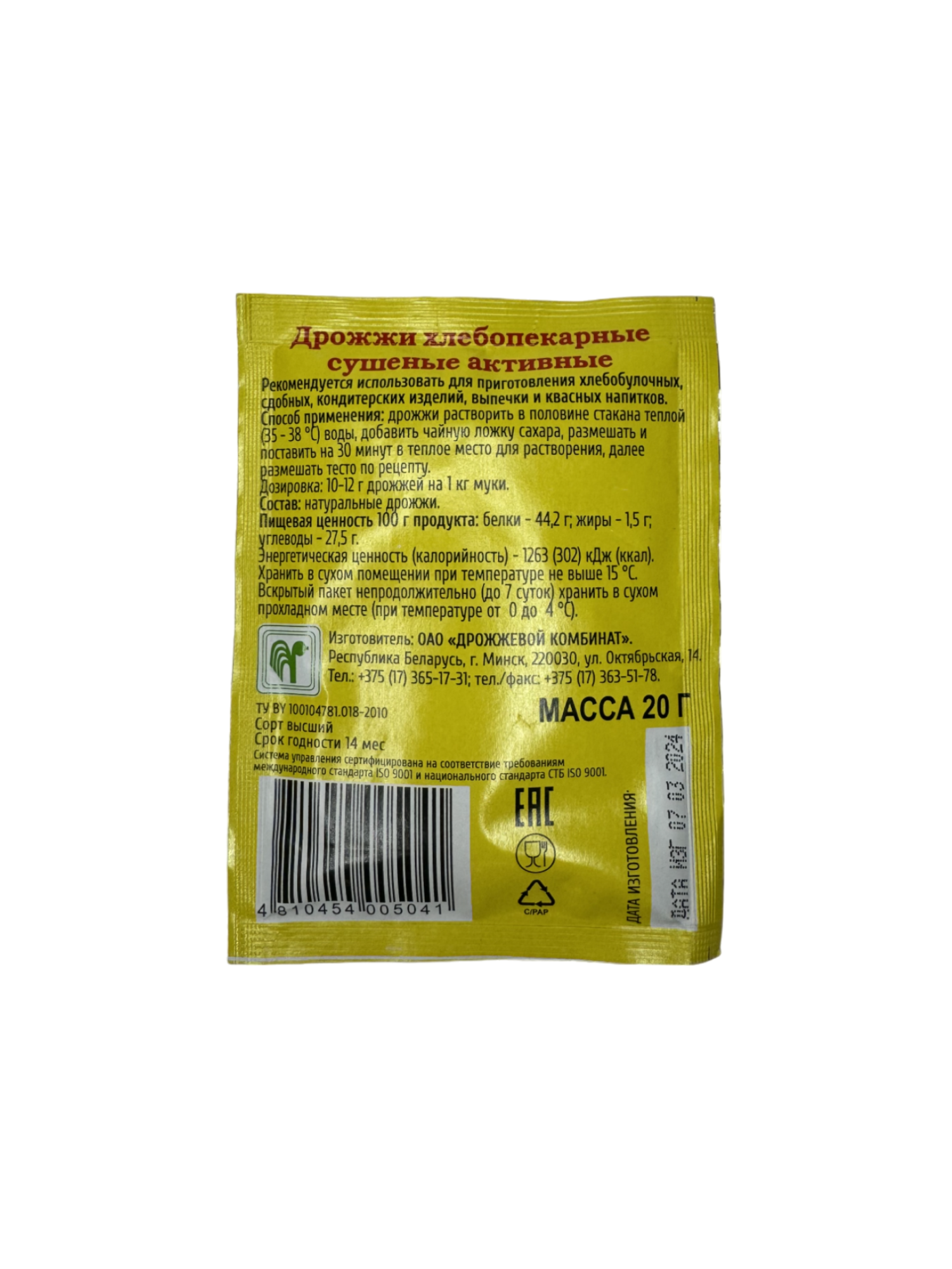 - Натуральный продукт: Дрожжи изготовлены из качественного, экологически чистого сырья, без добавления консервантов. Этот натуральный состав делает продукт безопасным для здоровья и идеальным выбором для домашней кухни.