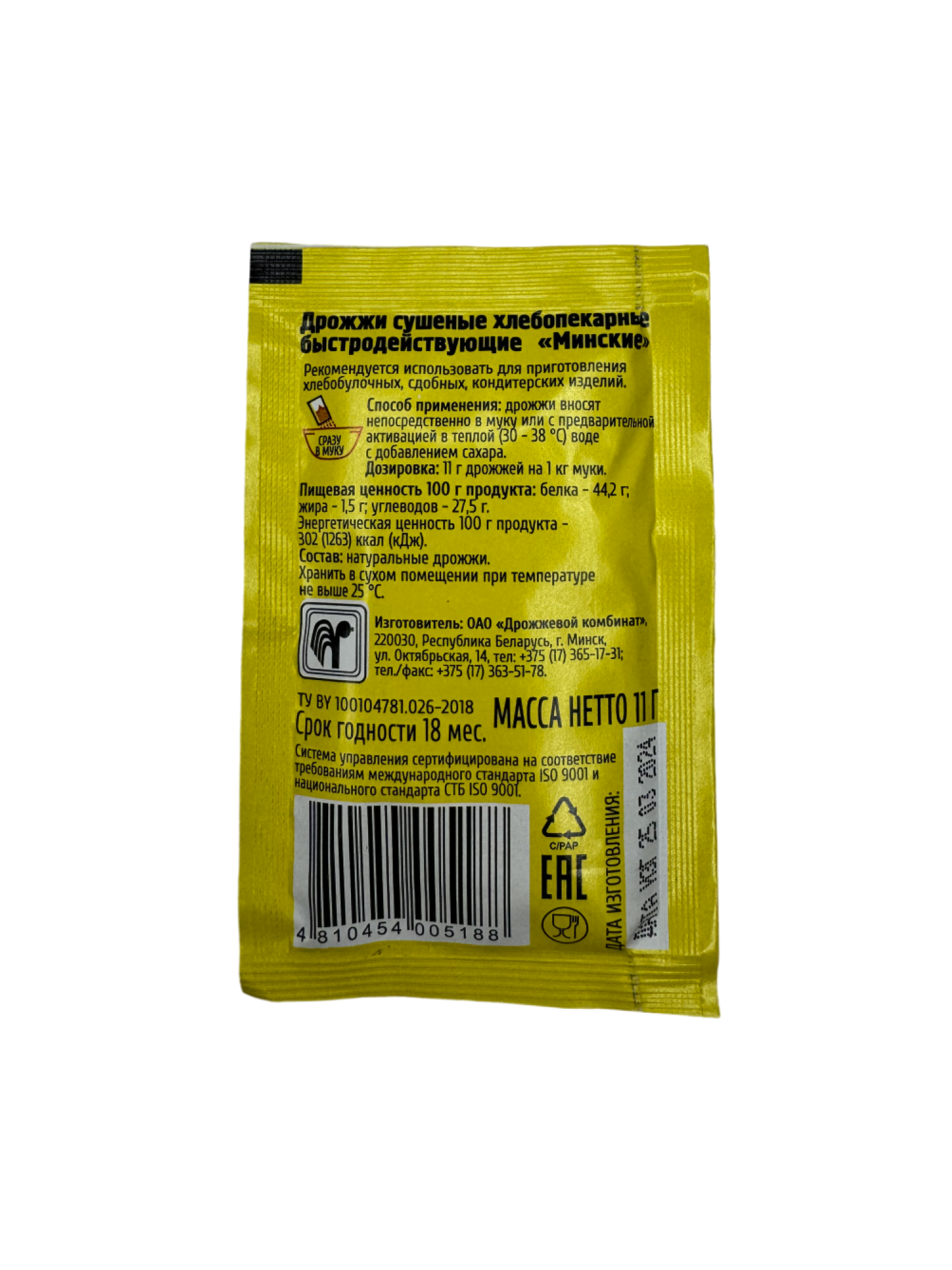 МДК Дрожжи сушеные хлебопекарные быстродействующие Минские 11г
