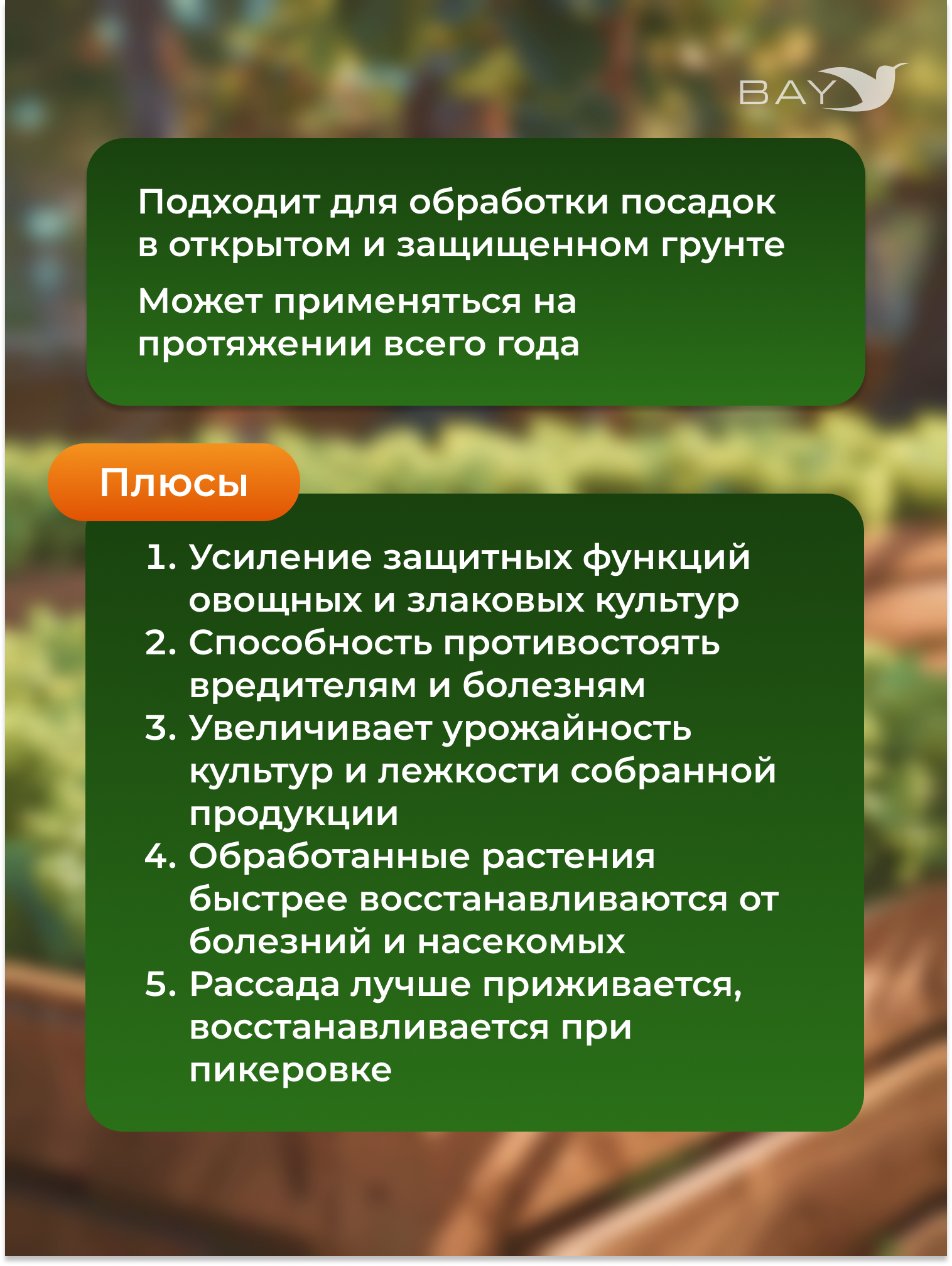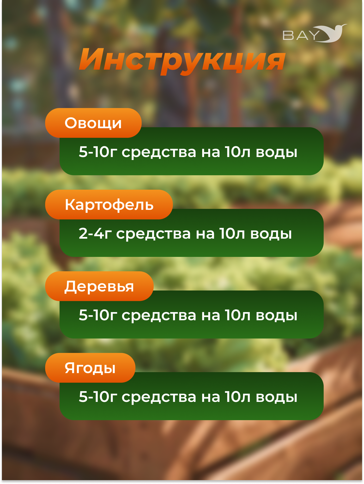 - Широкий спектр применения: Идеально подходит для овощных культур, плодово-ягодных растений, а также комнатных растений. Препарат можно использовать как на дачных участках и огородах, так и в домашних условиях.