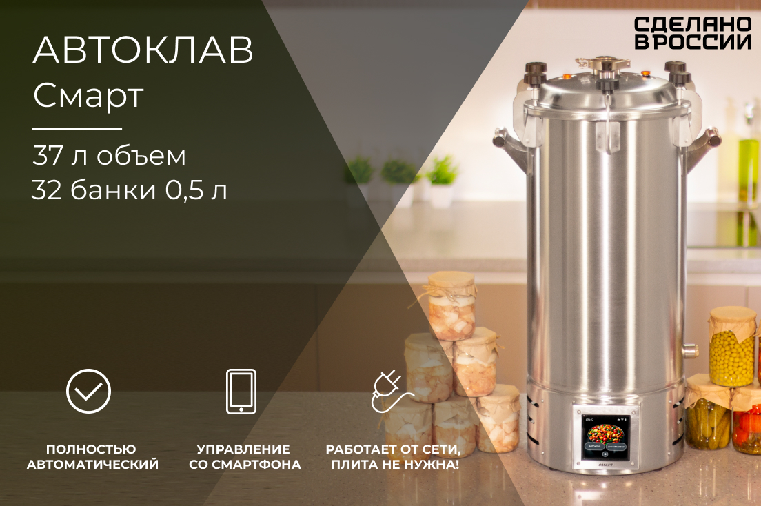 Автоклав «Смарт» 37 л – это современное решение для домашнего консервирования, сочетающее в себе передовые технологии, безопасность и удобство использования. Благодаря автоматизированному процессу и интеллектуальному управлению, приготовление консервации становится простым и предсказуемым, а результат – всегда безупречным.