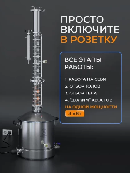 Подходит для опытных и начинающих пользователей. Оптимален для производства зерновых, фруктовых и сахарных дистиллятов с высоким качеством очистки и стабильным результатом.