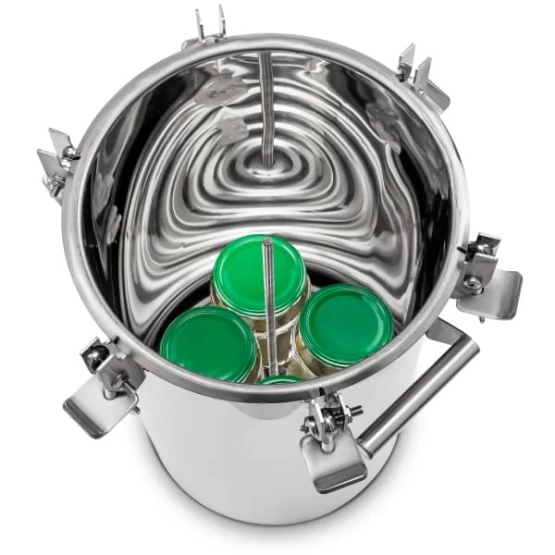 Многофункциональный автоклав для быстрого консервирования продуктов в домашних условиях с возможностью установки дистиллятора. Технология позволяет сохранять натуральный вкус, цвет и питательные свойства свежих ингредиентов за счет сокращения времени термической обработки. Комплексное решение для консервирования и дистилляции.