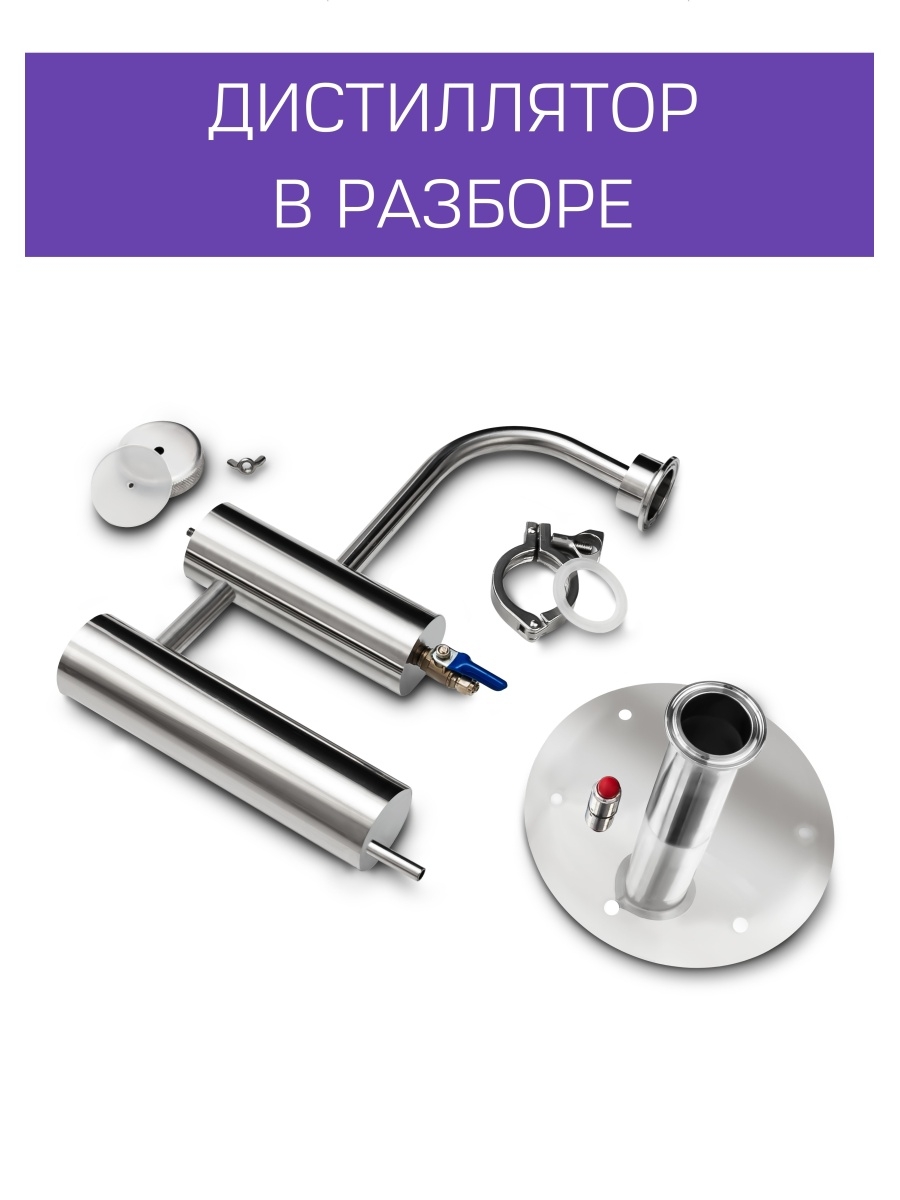 Разборный металлический сухопарник предназначен для очистки спиртовых паров, а также выполняет функцию арома-корзины: положите в ёмкость кусочки фруктов, цитрусовые корки или пряности и получите авторский алкоголь с индивидуальным вкусом и ароматом. Важно соблюсти условие – наполнять резервуар только на 70%, чтобы оставалось место для спиртовых паров. Кран внизу цилиндра предназначен для слива сивушного масла, которое конденсируется в полости сухопарника. Подсоедините небольшой шланг, направьте его в отдельную емкость и избавьте ваш напиток от вредных примесей.