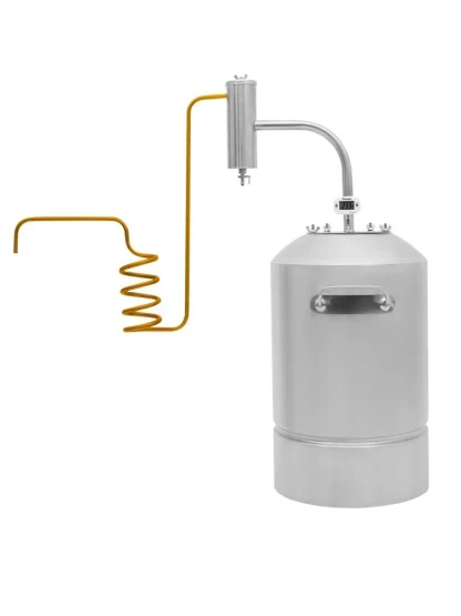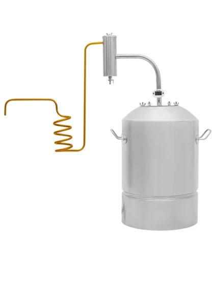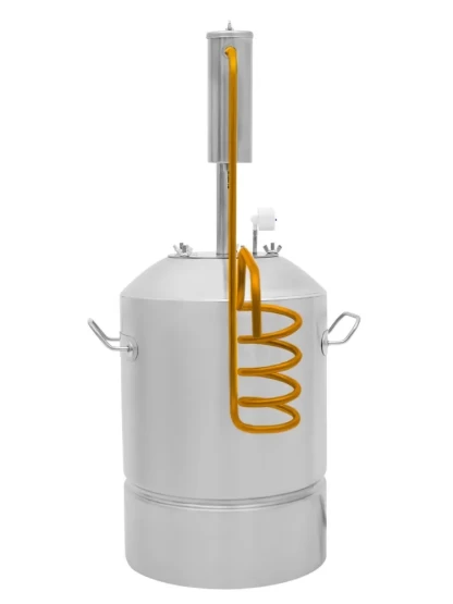 Та же модель «Дачный 2», но с медным сиденьем холодильника — улучшенное качество конденсации и чистоты продукта. Медный змеевик позволяет получить мягкий вкус напитка.