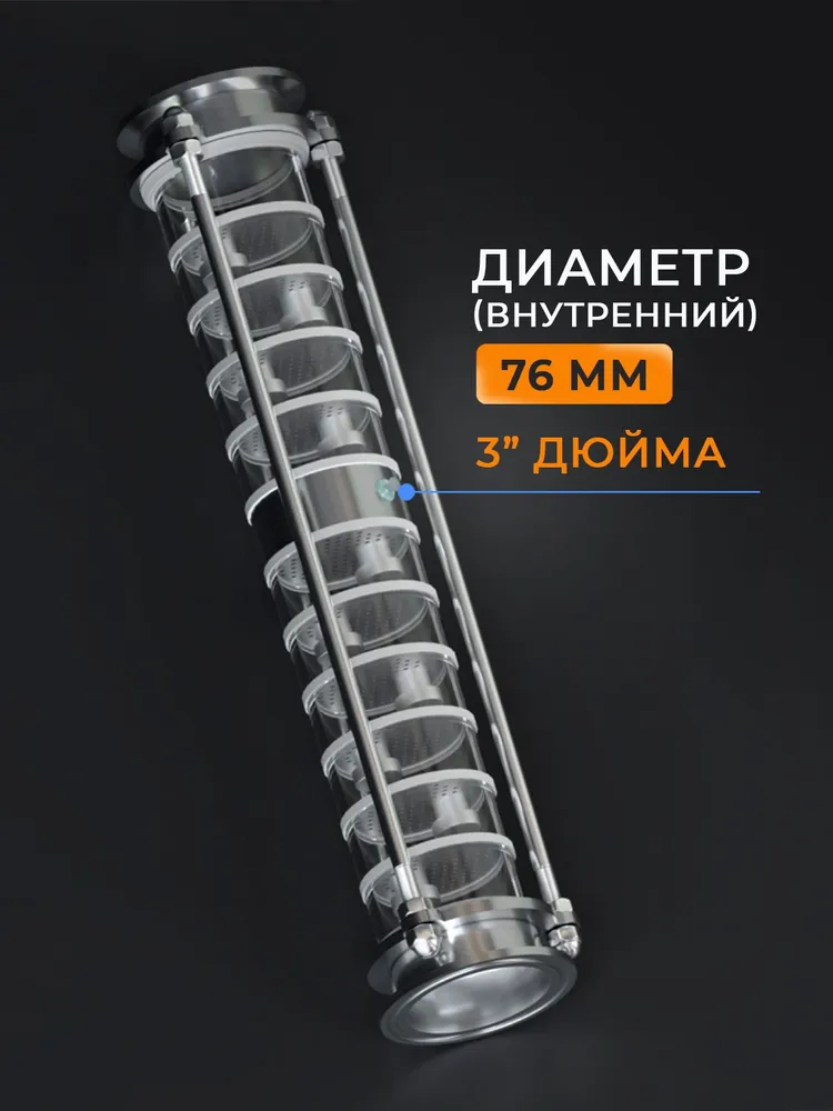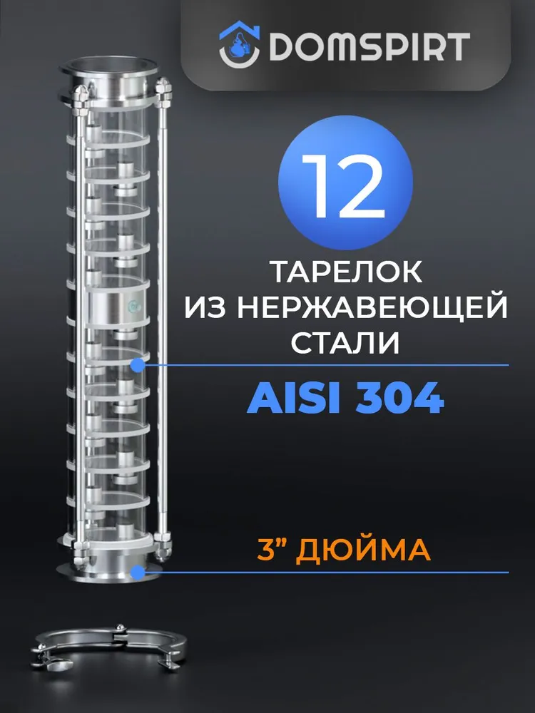 Царга DomSpirt 3 дюйма, 12 нержавеющих тарелок — это отличный выбор для тех, кто хочет создавать качественные, крепкие и ароматные напитки с визуальным контролем каждого этапа перегонки.