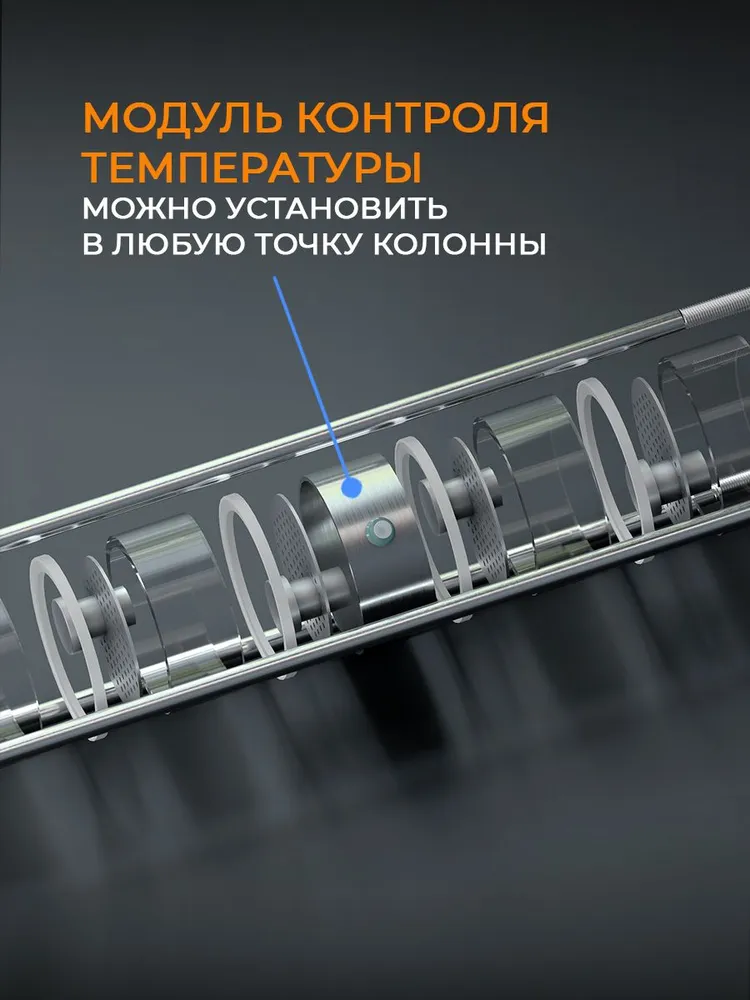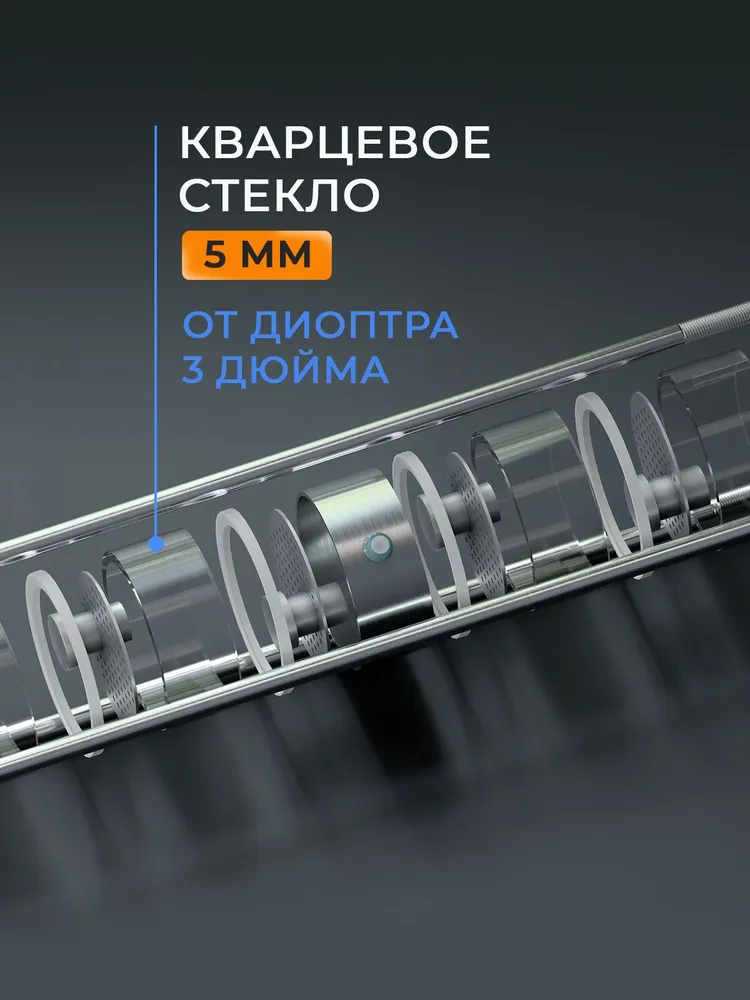 - Компактный и прочный дизайн. Колонна изготовлена из кварцевого стекла толщиной 5 мм, что обеспечивает надежность и долговечность оборудования.