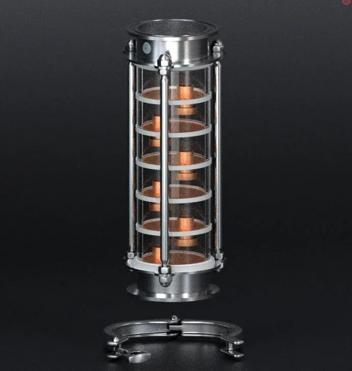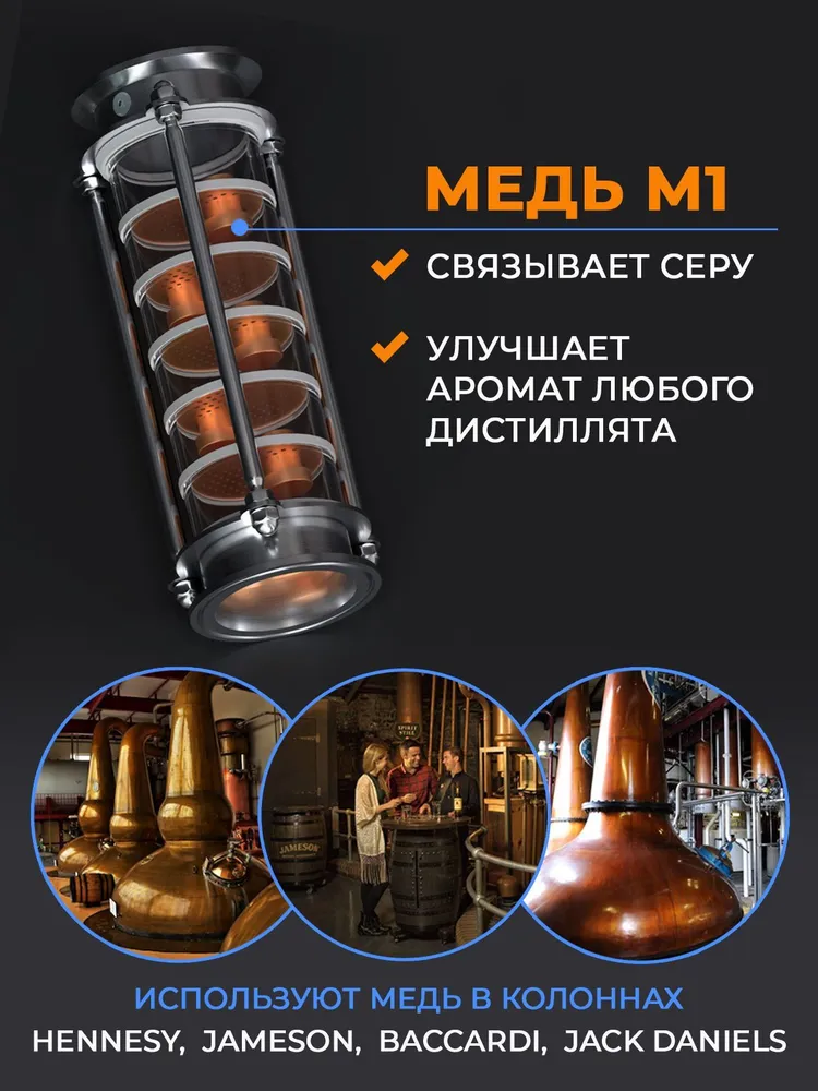 Царга DomSpirt с шестью медными ситчатыми тарелками создана для максимального укрепления дистиллята и улучшения его вкусовых характеристик. Устройство позволяет получать напитки высокой крепости (до 94%) с сохранением тонких ароматов исходного сырья, что делает его незаменимым для производства виски, коньяка, бренди и других благородных дистиллятов.