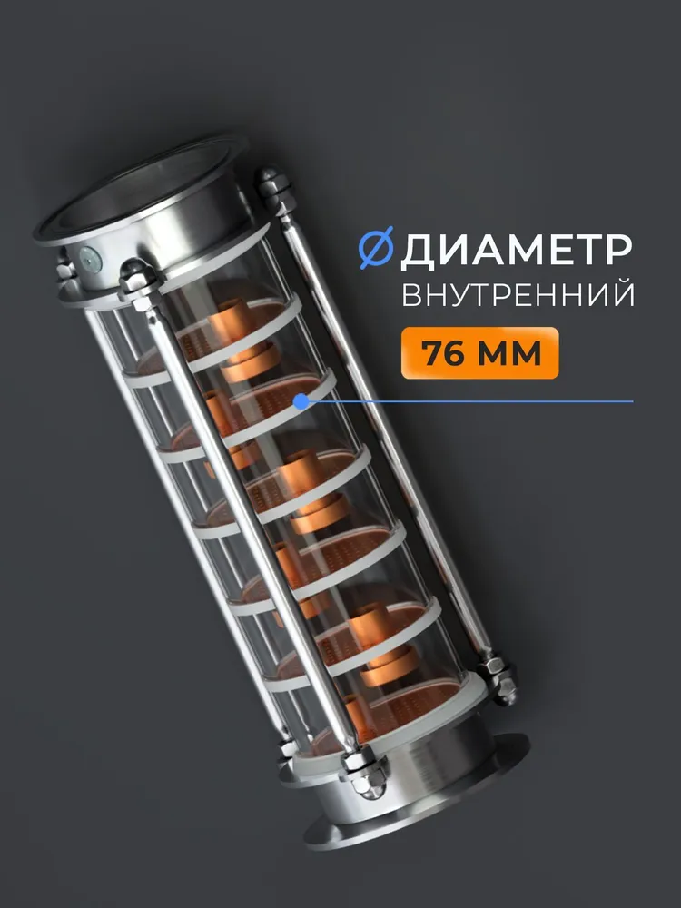 Царга DomSpirt 3 дюйма, 6 медных тарелок — это оптимальный выбор для тех, кто ценит качество, универсальность и возможность получения насыщенных ароматных дистиллятов в домашних условиях.