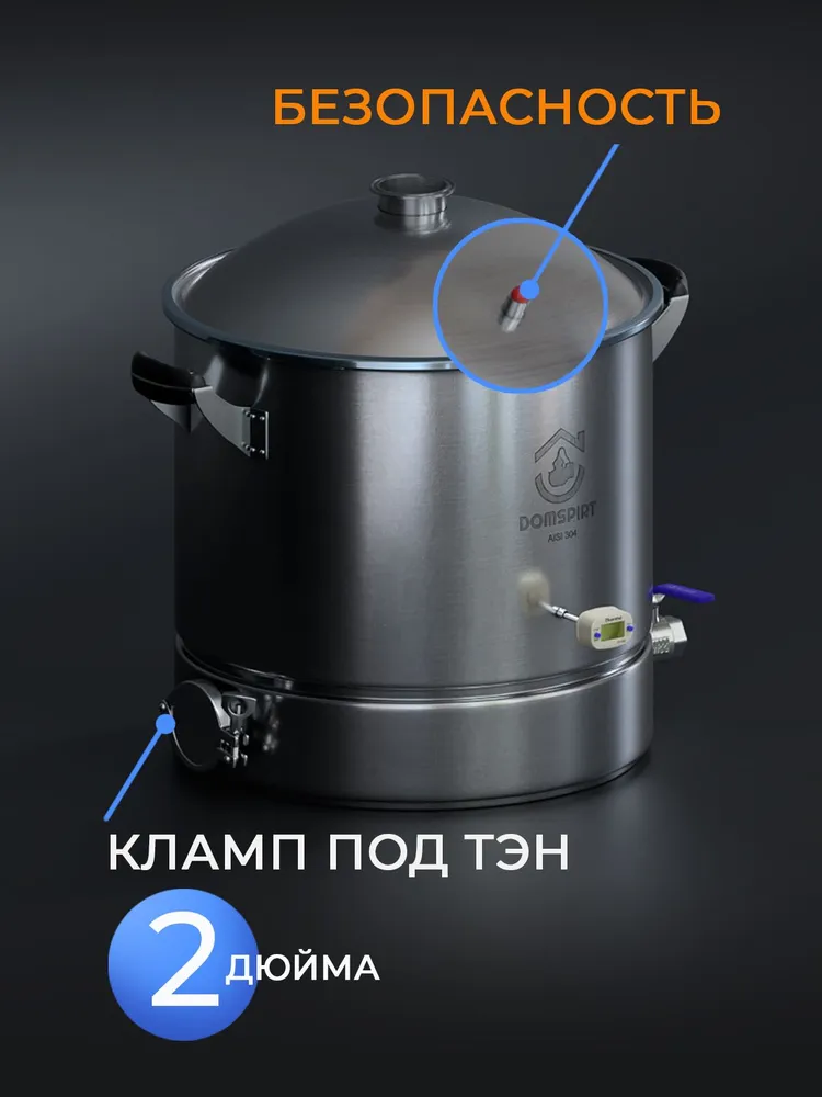 - Универсальность. Возможность установки ТЭНа мощностью до 3 кВт через выход под кламп 2 дюйма.