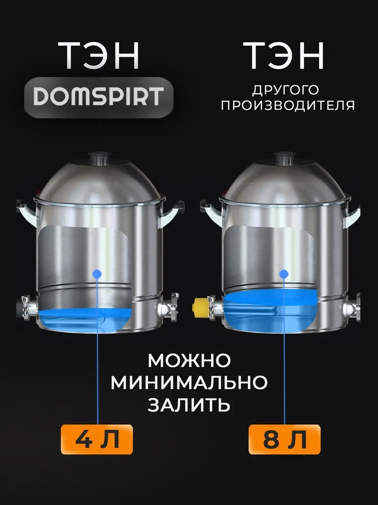 - Уникальная форма нагревательного элемента типа «коготь» позволяет минимизировать объем остаточной жидкости в кубе.