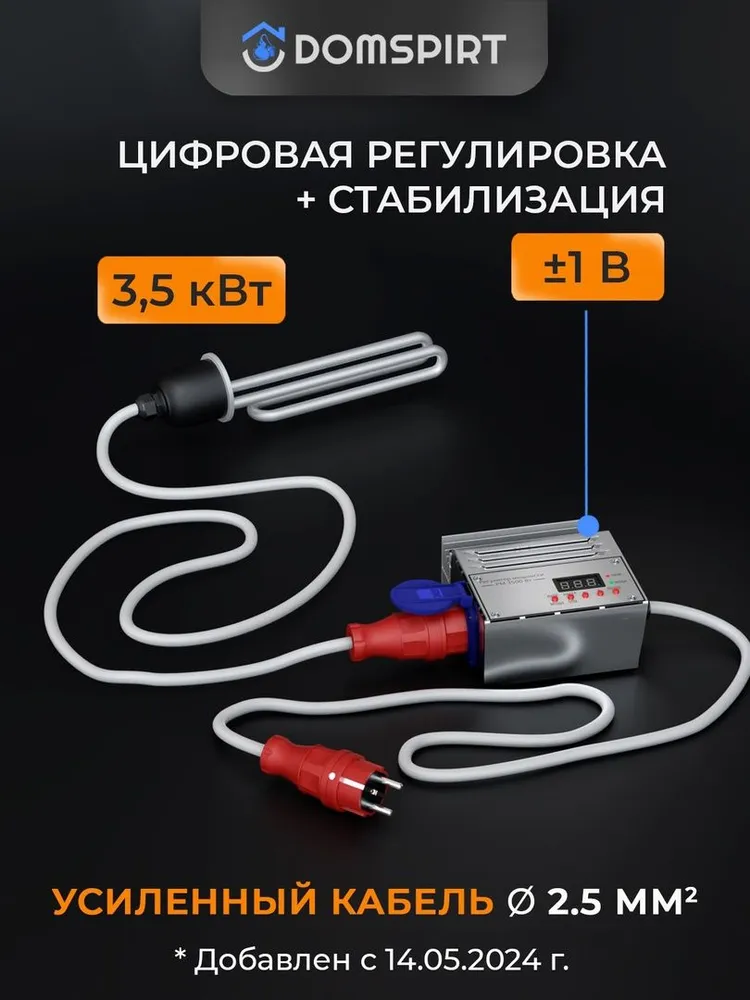 - Усиленный кабель с сечением 2,5 кв. мм добавлен для повышения надежности, начиная с мая 2024 года.