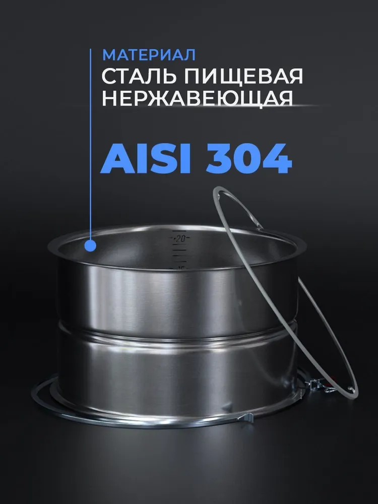 - Материал высокого качества. Пищевая нержавеющая сталь AISI 304 гарантирует долговечность и безопасность.