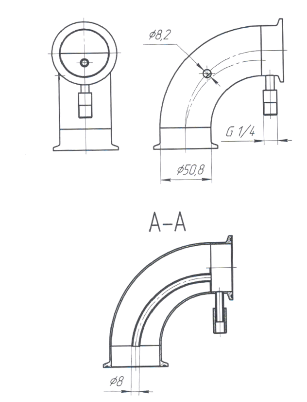 - Угол 90* с отверстием и узлом отбора по жидкости - 1шт.