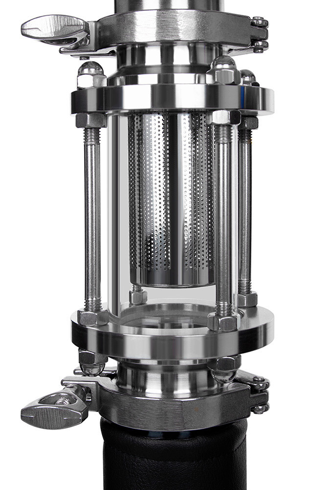Еще одно применение диоптра это использовать его в качестве пеногасителя. Установите его первым элементом на перегонный куб, а затем установите на него колонну. При перегонки браги , вы сможете контролировать образование и выплеск пены в колонну.