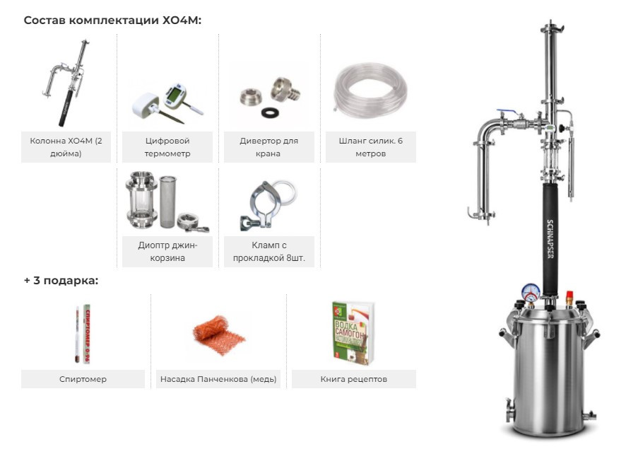 Если вы рассматриваете покупку самогонного аппарата Шнапсер ХО4М с кубом 25 л. обязательно обратите внимание на наше специальное предложение!