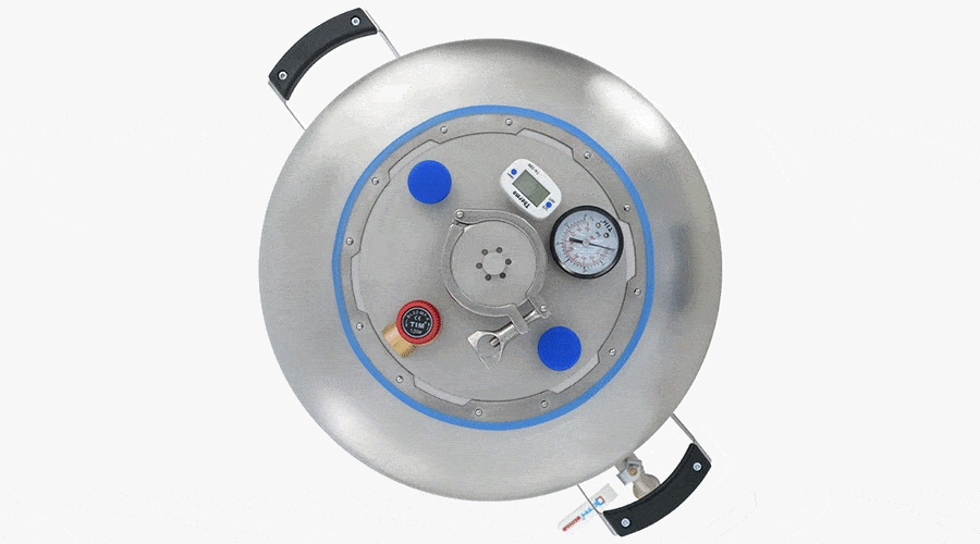 Крышка крепится намертво, риска стравливания нет. Толщина крышки — 3 мм. Она не выгнется даже при избыточном давлении. Края крышки фиксируются в пазах, где находится силиконовое уплотнение, что гарантирует абсолютную герметичность.