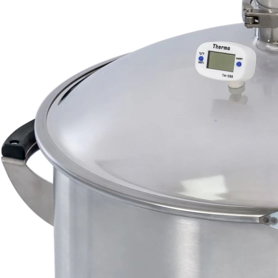 На крышке - стандартный кламп на 1,5 дюйма. Что бы вы ни решили дальше: докупить царгу, собрать ректификационную колонну, все можно будет поставить на универсальный перегонный куб Дымки 2.0.