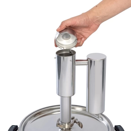Байонетная крышка. Забудьте про винтовые крышки, барашки и прочее - байонетная крышка позволяет открывать/закрывать сухопарник на 1 секунду прямо в процессе перегонки, когда нужно заменить содержимое джин-корзины и не нужно выпускать спиртовые пары.