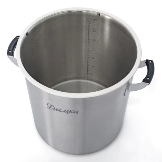 - Удобство в использовании: Благодаря широкой крышке, куб легко наполнять и очищать. Куб оснащен ручками с термостойкими бакелитовыми накладками, которые не нагреваются, а также разметкой литража внутри куба.