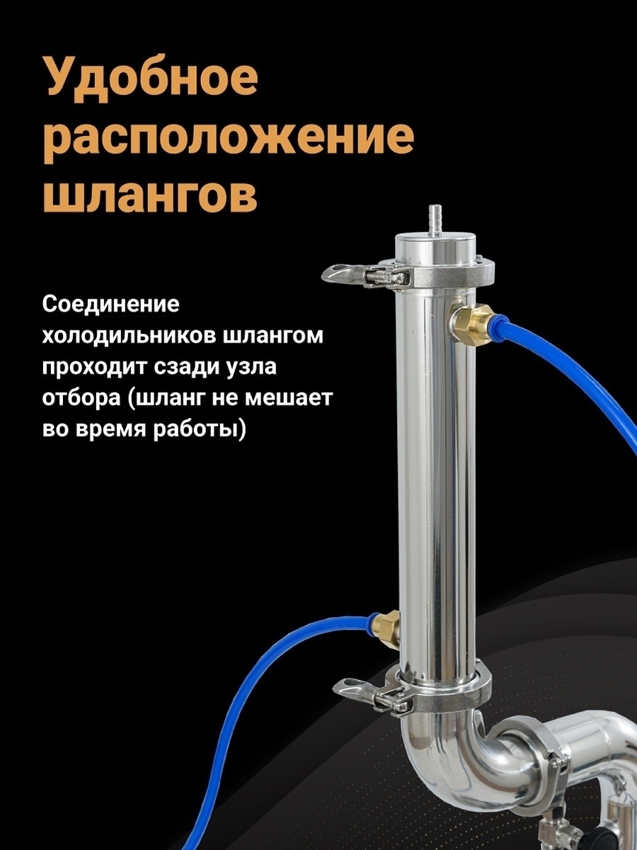 - Удобное расположение шлангов. Соединение холодильников шлангом проходит сзади узла отбора (шланг не мешает во время работы)