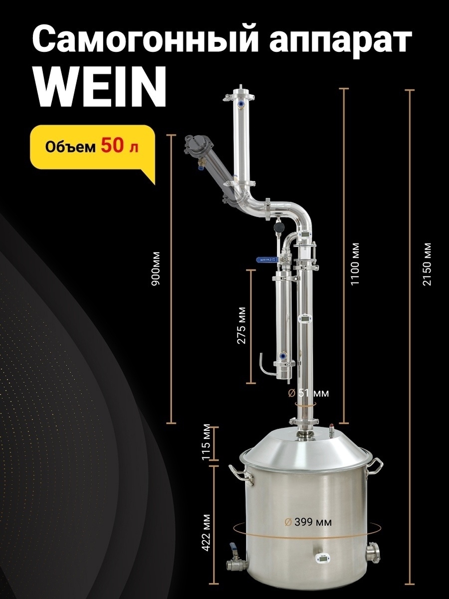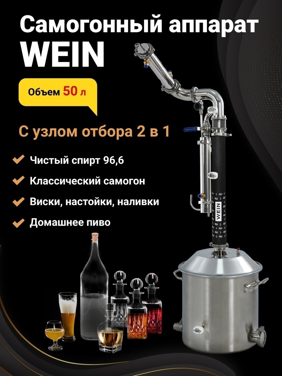 Самогонный аппарат Wein 6 PRO, 50 л - это усовершенствованная модель, которая вобрала в себя все самое лучшее от предыдущих пяти поколений Вейн и приобрела новые ценные качества, благодаря которым стала лидером среди представленных на рынке ректификационных колон.