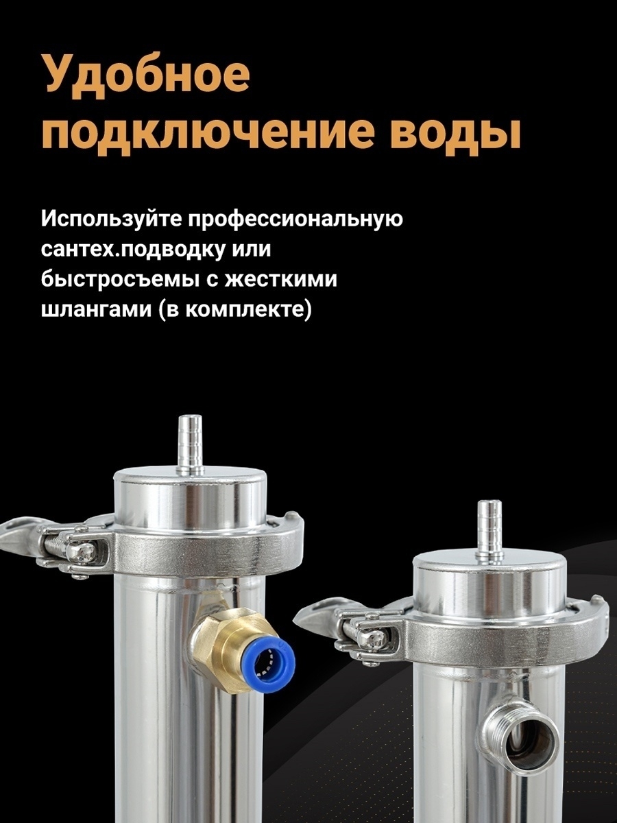 - Удобное подключение воды. Используйте профессиональную сантех.подводку или быстросъемы с жесткими шлангами (в комплекте)