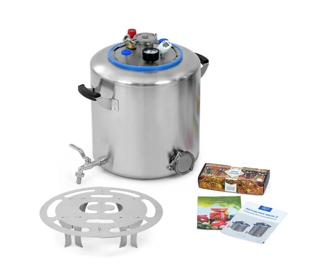 Электрический автоклав Wein 2 представляет собой профессиональное решение для домашнего консервирования с увеличенной производительностью. Автоматизированная система управления значительно упрощает процесс приготовления, позволяя пользователю выбирать из готовых рецептов или устанавливать индивидуальные параметры. Прочная конструкция из медицинской нержавеющей стали и трехлетняя гарантия обеспечивают долговечность эксплуатации. Универсальность устройства позволяет использовать его как для традиционного консервирования, так и для дистилляции спиртовых напитков, делая его многофункциональным кухонным аппаратом.
