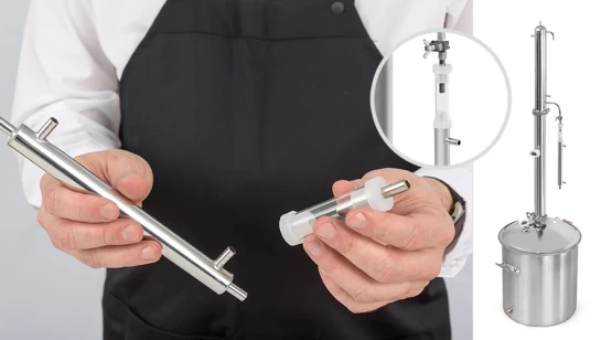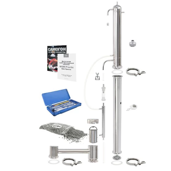 Профессиональная ректификационная колонна диаметром 2 дюйма для получения спирта максимальной крепости. Конструкция обеспечивает высокую производительность и качественную очистку дистиллята.