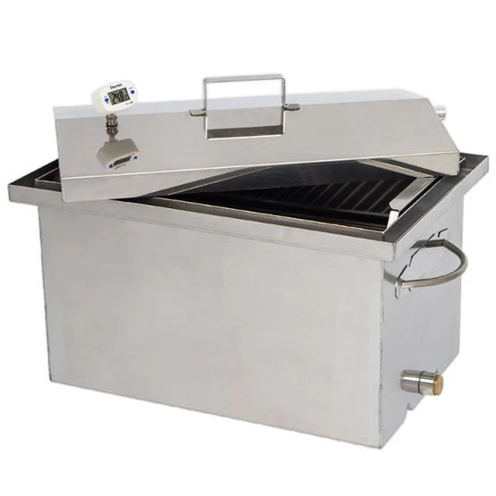 Универсальная коптильня для горячего и холодного копчения с объемом камеры 28 литров. Устройство предназначено для приготовления различных продуктов в домашних условиях, на природе или даче.