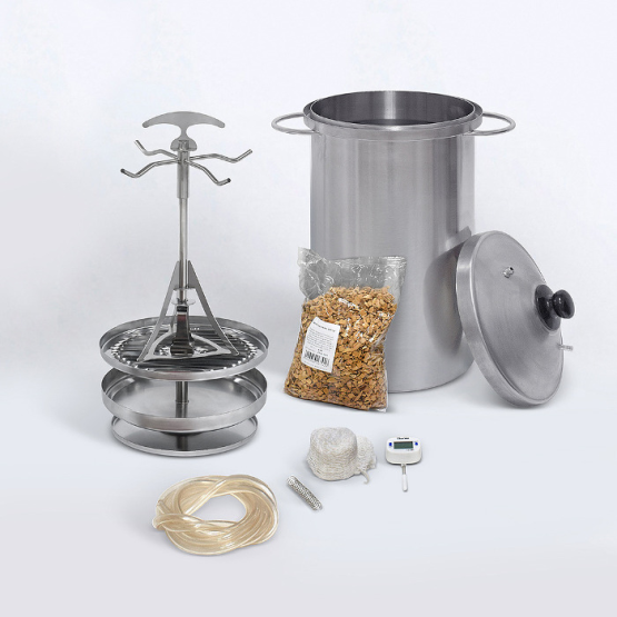Дополнительные подарки в комплекте (ольховая щепа, формовочная сетка, насадка для курицы) помогут вам приступить к копчению сразу, без лишних трат.