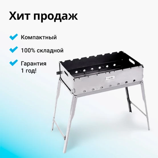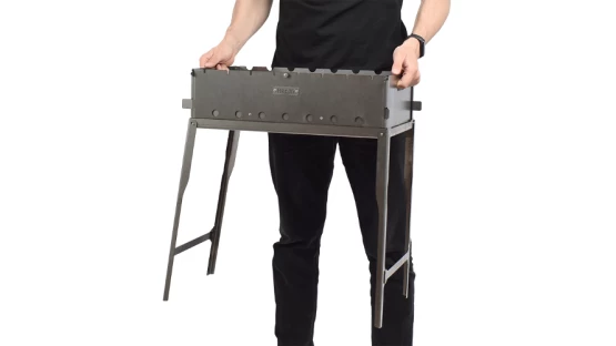 Переносной складной мангал для комфортного приготовления пищи на природе. Конструкция сочетает компактность в транспортировке с удобством использования за счет оптимальной высоты установки.