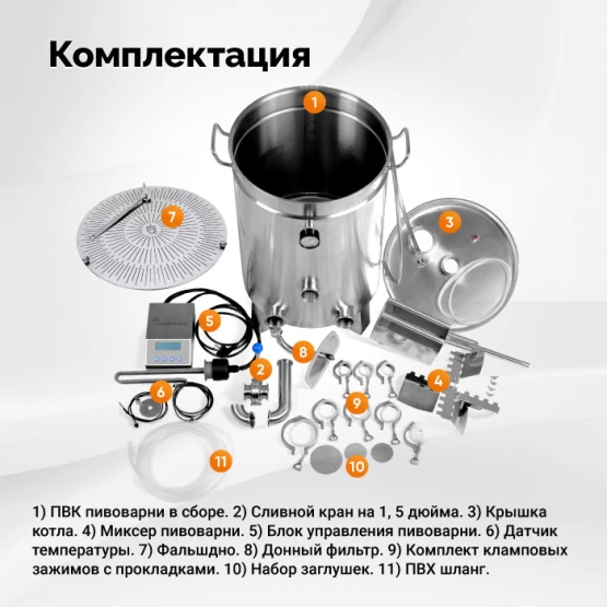 Профессиональная пивоваренная система для домашнего приготовления крафтового пива. Оборудование сочетает автоматизированное управление для начинающих и расширенные ручные настройки для опытных пивоваров. Позволяет производить до 50 литров качественного пива за одну варку.