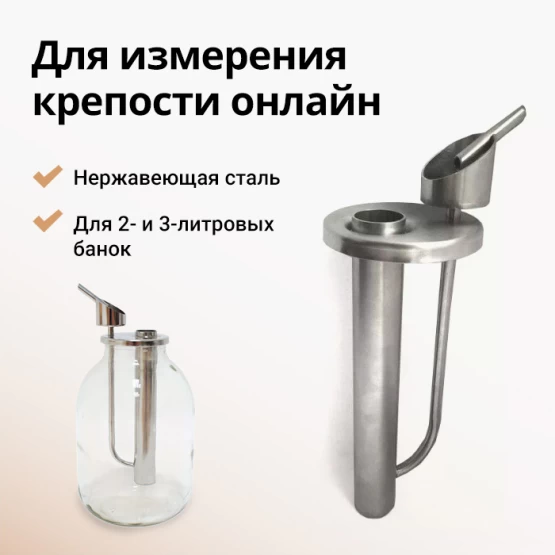 Аксессуар для непрерывного измерения крепости дистиллята в процессе перегонки. Устройство предназначено для точного контроля алкоголя и оптимизации процесса отбора фракций.