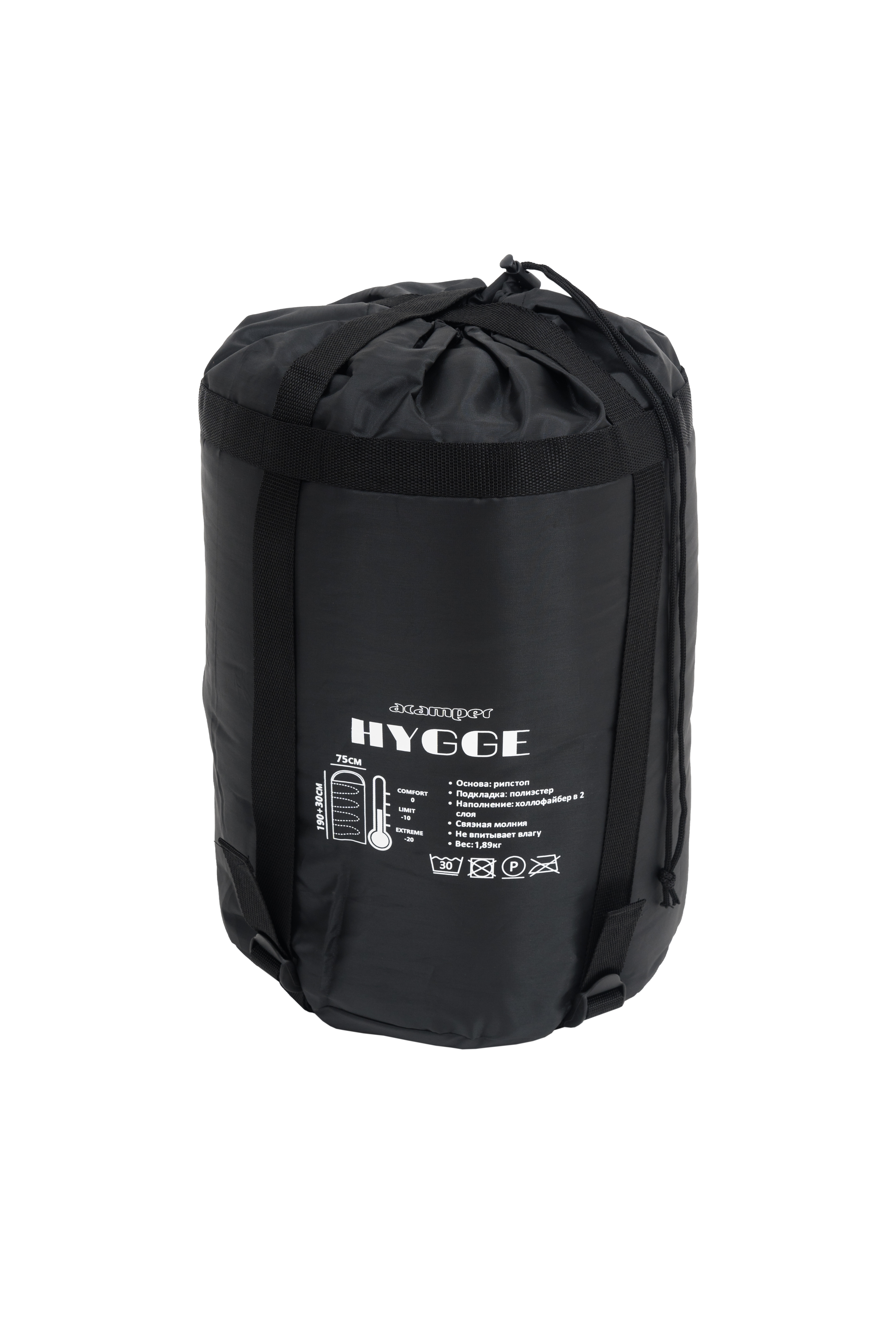 - Спальный мешок упакован в мешок-переноску из полиэфира