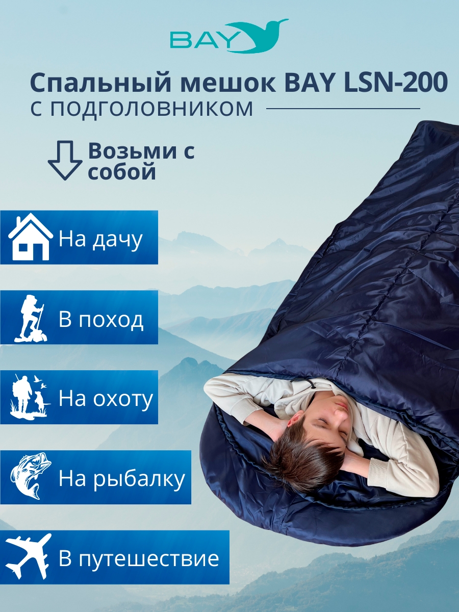 Спальный мешок BAY LSN-200 (75x230) с подголовником